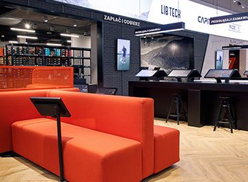 na miejscu czeka na Ciebie 55 tabletów, dzięki którym możesz przeglądać ofertę sklepu stacjonarnego i dobrać na miejscu dodatkowe produkty do turystyki, sportów zimowych, zespołowych i wodnych, sztuk walki, jazdy na rowerze oraz z obszaru fitness&healty.